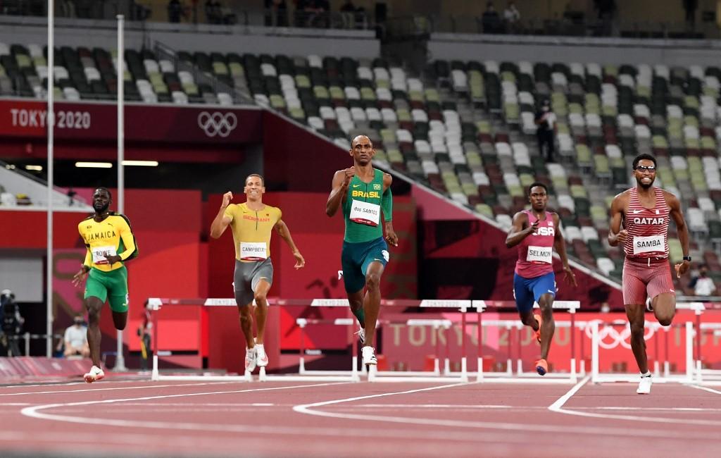 Jonne roriz/cob alison dos santos fez ótimo tempo nos 400m com barreiras.